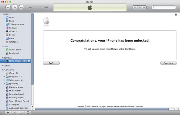 Step Three: Click Continue and activate your iDevice. You will see the "Congratulations" message but sometimes it is absent. Don’t worry, because when you get the signal you will be able to make calls and your iDevice is unlocked.